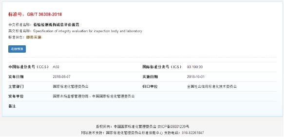 該標(biāo)準(zhǔn)將于2018年10月1日正式實施,填補了檢驗檢測領(lǐng)域誠信體系建設(shè)國標(biāo)缺失的空白,有利于對檢驗檢測權(quán)力機(jī)構(gòu)的監(jiān)管與規(guī)范,是國家信用體系建設(shè)的重要內(nèi)容之一。