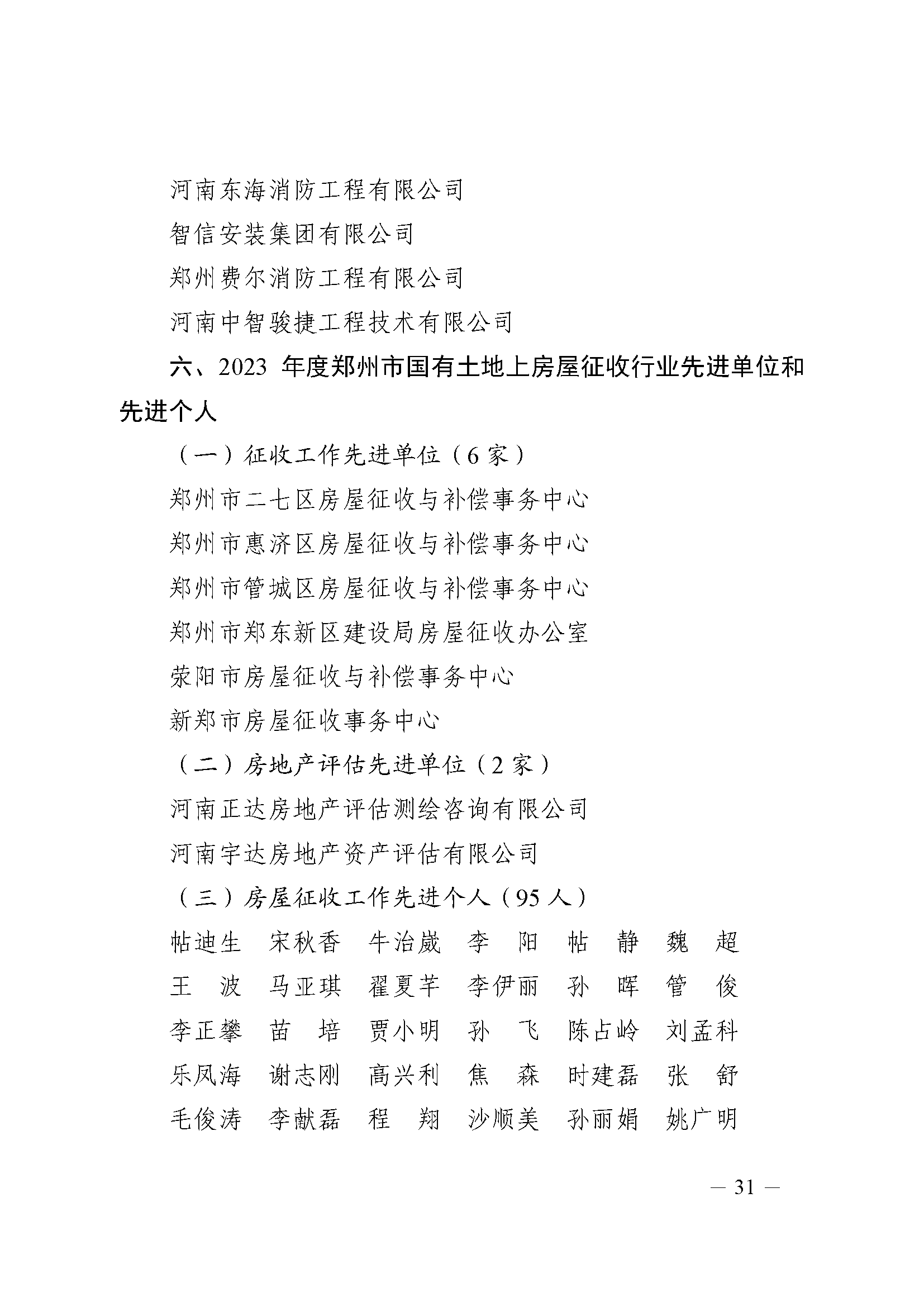 鄭州市城鄉(xiāng)建設(shè)局關(guān)于表揚2023年度建設(shè)系統(tǒng)先進單位先進企業(yè)和先進個人名單的通報